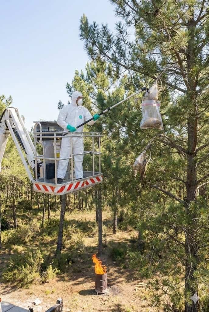 Enlèvement mécanique des nids (échenillage) ou pose de pièges par nos techniciens équipés de combinaisons de protection intégrale.
