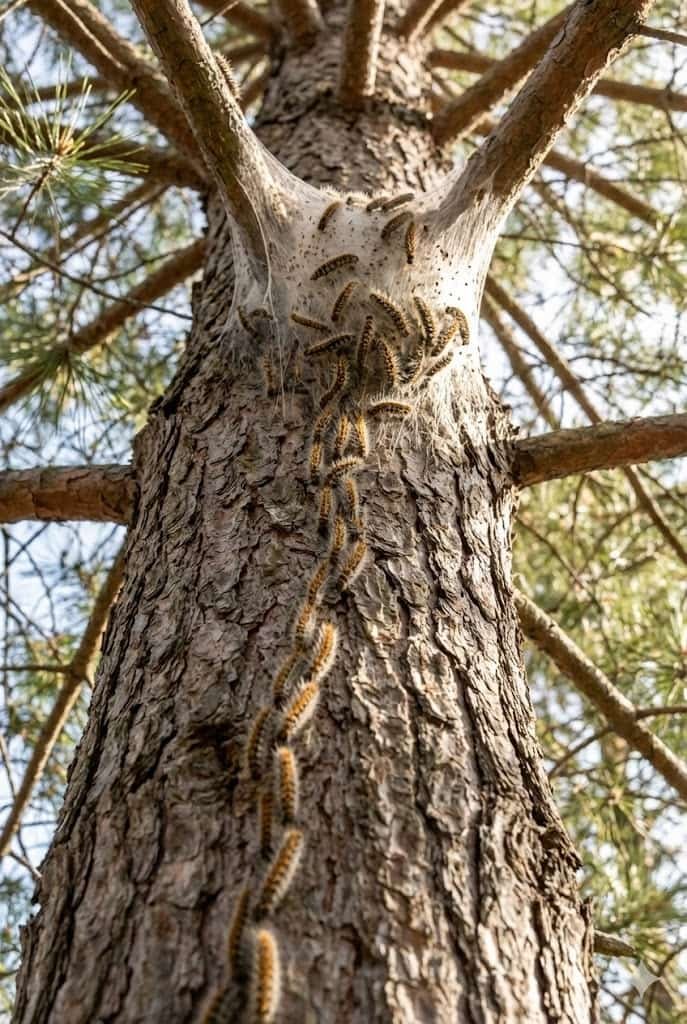 Des files indiennes de chenilles poilues qui descendent le long du tronc ou traversent votre terrasse/jardin.